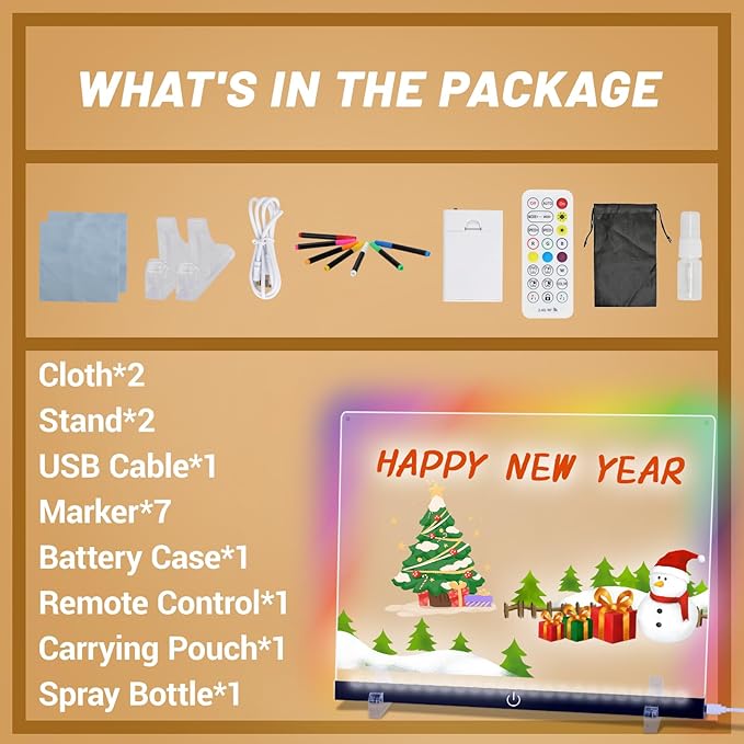 • LED Writing Board with Multi-Functional and Versatile Use: Far more than an ordinary writing surface, this LED light-up board adapts effortlessly to a range of purposes. Use it for brainstorming sessions, note-taking, appointment reminders, or even as a night light for reading. Its ability to serve as a desk lamp, ambient décor, or eye-catching signage makes it indispensable for home, office, or retail environments.