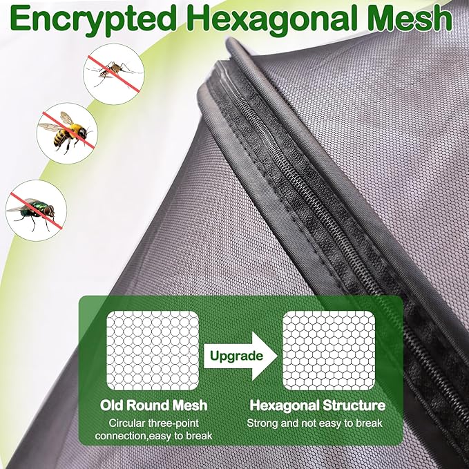 • Full-coverage Encrypted Mesh: This stroller mosquito net cover adopts a 1mm diameter honeycomb hexagonal net, which is more durable than the traditional circular net. 360° ventilation and air permeability, completely resistant to mosquitoes, flies and dust.