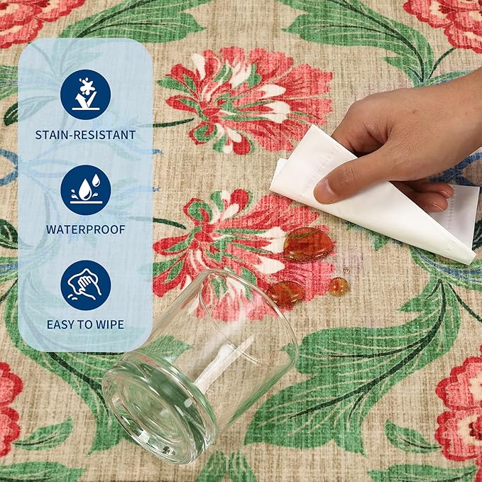 • 【floral Botanical Design】Inspired by floral fabrics, this botanical design features vivid, mirrored big floral motifs that attract the sweetest hummingbirds in a garden-like setting. Petals in bright yellow, lavender, pink, and red bloom beautifully against diffrent background. Water-resistant, stain-resistant, and machine-washable. Rug colors may vary slightly according to your device and the lighting in your space