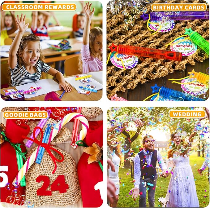 • 100-Piece bubble wands bulk pack: Ideal for party events, ensuring everyone gets a wand.