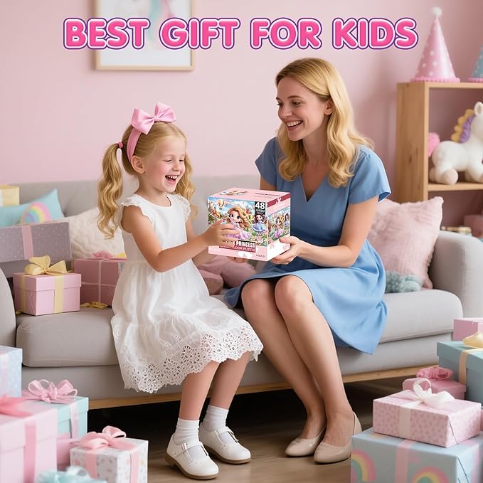 • Perfect Gift Ready:The princess theme makes this floor puzzle an ideal gift for girls. It is also a great preschool learning gift that is sure to spark girls' imagination and love for learning.It’s perfect for family gatherings, where kids and adults can enjoy putting puzzles together to create lovely parent-child moments. Whether for a birthday, Thanksgiving, Christmas, Easter, or any other special occasion, it makes an ideal present