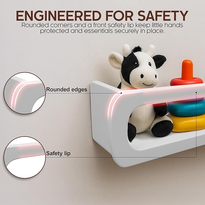 • [๐—ฅ๐—ผ๐˜‚๐—ป๐—ฑ๐—ฒ๐—ฑ ๐—˜๐—ฑ๐—ด๐—ฒ๐˜€ ๐—ณ๐—ผ๐—ฟ ๐—ž๐—ถ๐—ฑ๐˜€] Smooth corners and a front safety lip help keep books, toys, and nursery essentials secure and organized.