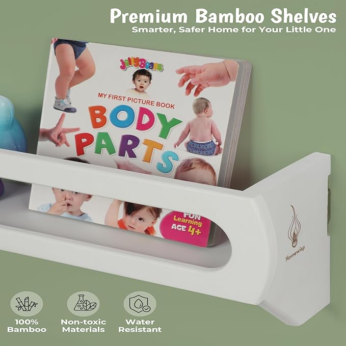 • [๐—ฃ๐—ฟ๐—ฒ๐—บ๐—ถ๐˜‚๐—บ ๐—ฆ๐—ผ๐—น๐—ถ๐—ฑ ๐—•๐—ฎ๐—บ๐—ฏ๐—ผ๐—ผ] Crafted from high-quality bamboo wood, these durable floating shelves offer strength, stability, and a clean, organic look for nursery or kidsโ€™ room storage.