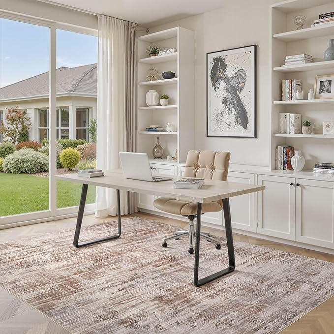 • Neutral Abstract Style: Elegant neutral design lets this rug integrate seamlessly into any space. It enhances room ambiance and adds refined elegance to your home. Perfect for living rooms, bedrooms, dining rooms, studies, offices, playrooms and nurseries
