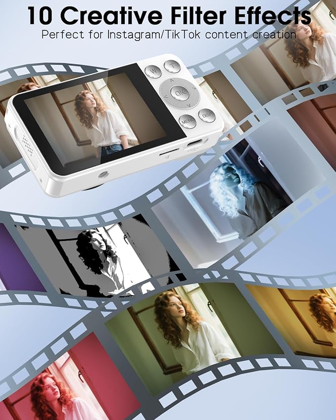• Shoot Storytelling Images With Ease: This camera's portrait effect is professionally turned and focuses on portrait and close-up photography, perfect for shooting vintage atmosphere, “French oil painting” style photos in bright scenes, and easy to create popular socal media photos and videos without any retouching. 10 filter styles, fill light, more fun and creativity waiting for you to explore!
