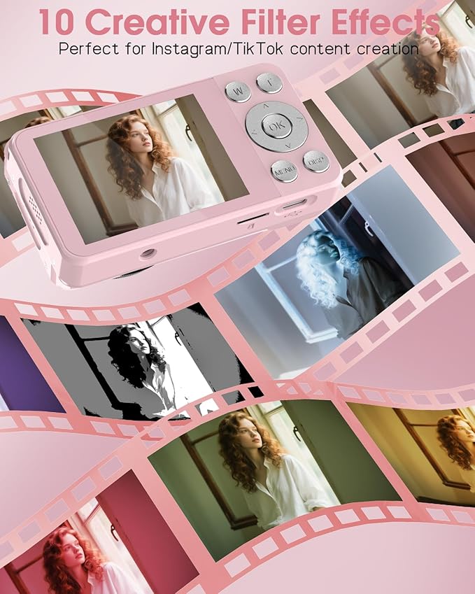 • Shoot Storytelling Images With Ease: This camera's portrait effect is professionally turned and focuses on portrait and close-up photography, perfect for shooting vintage atmosphere, “French oil painting” style photos in bright scenes, and easy to create popular socal media photos and videos without any retouching. 10 filter styles, fill light, more fun and creativity waiting for you to explore!