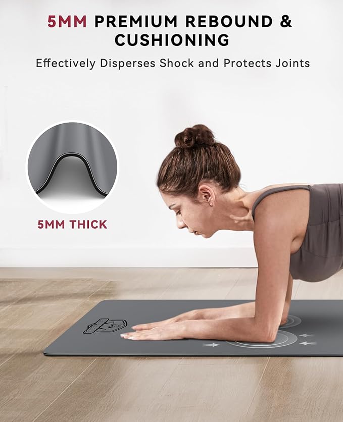 • 5mm Cushioning for Joint Protection:The thick 5mm construction absorbs impact during planks, jumps, and kneeling, reducing strain on knees, wrists, and hips while providing a stable base for balance-focused exercises on this thick yoga mat