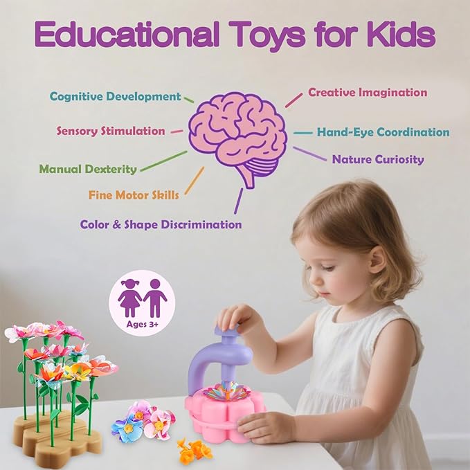• 🛡️【Safe, Durable, and Ready to Play】 Made with ASTM-certified non-toxic plastic, all materials comply with US CPSIA safety standards. Sturdy stems and reusable petals withstand hours of play, while the flowers market toy is frustration-free for 4-8 years old. Let creativity bloom worry-free!