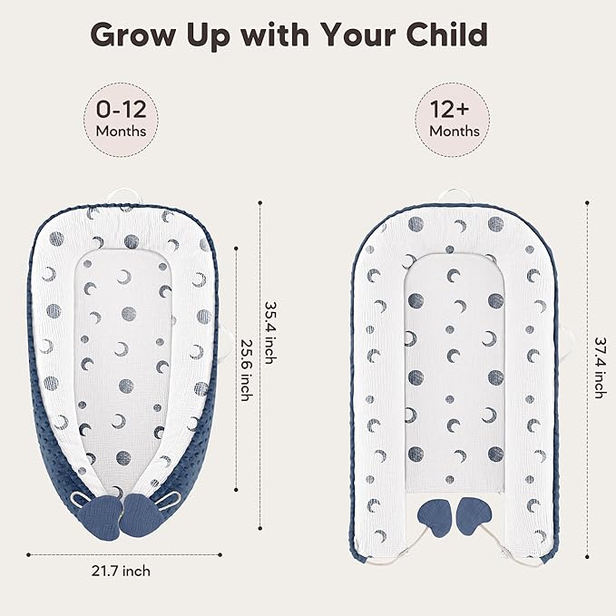 • Easy to Clean & Maintain: The baby lounger pillow pillow comes with a removable, machine-washable cover, making cleanup a breeze for busy parents. Its adjustable design grows with your baby, ensuring long-lasting use from infancy to toddlerhood.