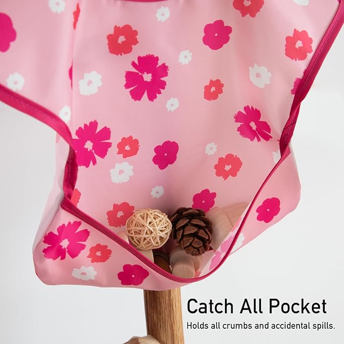 • Waterproof and Spill-Proof:Crafted from 100% polyester (softer than silicone!), these infant pink floral baby feeding bibs feature a waterproof design keep your baby clean and dry during self-feeding sessions.