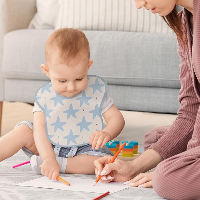 • Waterproof and Spill-Proof:Crafted from 100% polyester (softer than silicone!), these infant light blue ocean baby feeding bibs feature a waterproof design keep your baby clean and dry during self-feeding sessions.