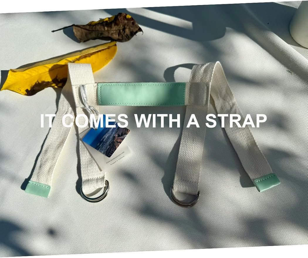 • Includes: 1 canvas mat, faux leather handle, and webbing strap
