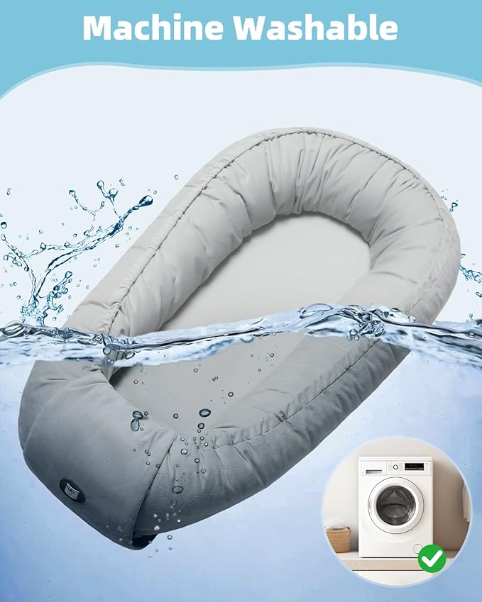 • Full detachable & machine washable: Parenting is messy-but we've got you covered. Every part of this lounger is fully detachable, the cotton cover is machine washable. It resists pilling and fading after repeated washes, ensuring it can be used for a long time. Whether it's spit-up, drool, urine stains or food spills, simply remove the cover and put it into the washing machine. Save time on laundry, you will have more time to cuddle and play with your baby!