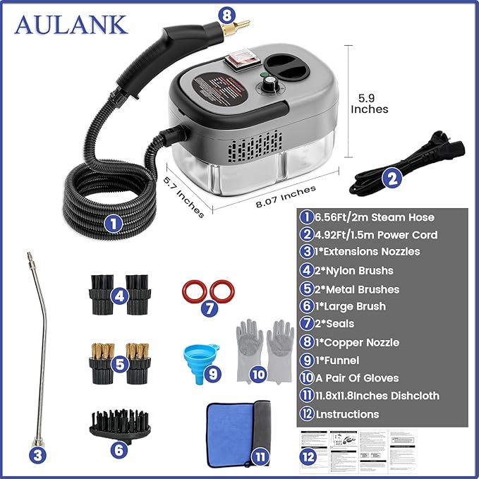 • 【Multi-function Steam Cleaner & Multiple Accessories Set】Our AULANK powerful home steam cleaner includes a wide range of brushes accessories, and this all-in-one steamer for cleaning.It can effectively clean stubborn greasy dirt and stains, and is suitable for cleaning walls, cooktops, smoke lamps, microwave ovens, washing machines, refrigerators, etc., You can choose the accessories which you needed and to clean hard-to-reach areas.Make your home cleaner and fresher than ever.