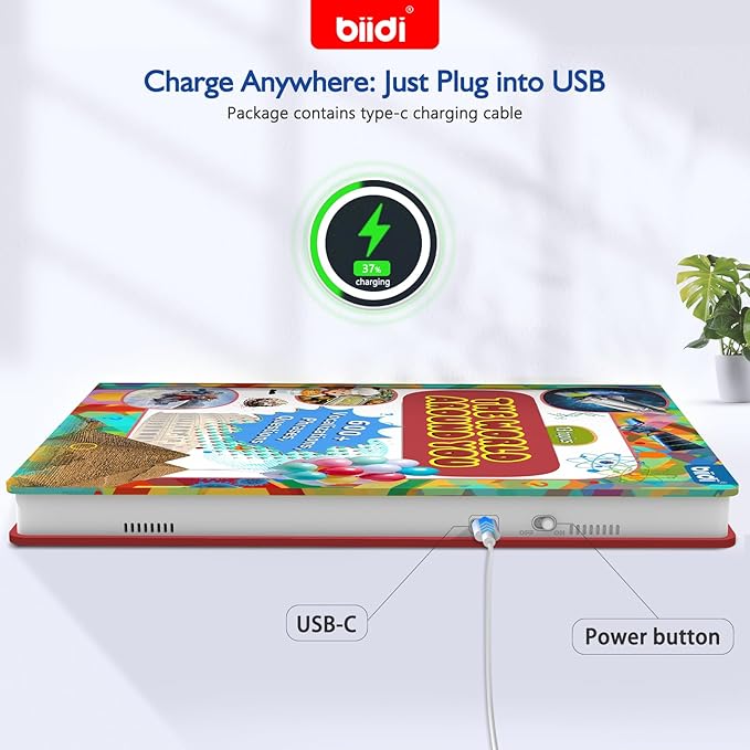 • Durable Design & Type C: Tear-resistant & waterproof book pages, carefully bound.The electronic learning toys with rounded corners that are safer for children. simple and convenient TYPE-C charging port is more reliable, and up to 6 hours of continuous use at moderate volume!
