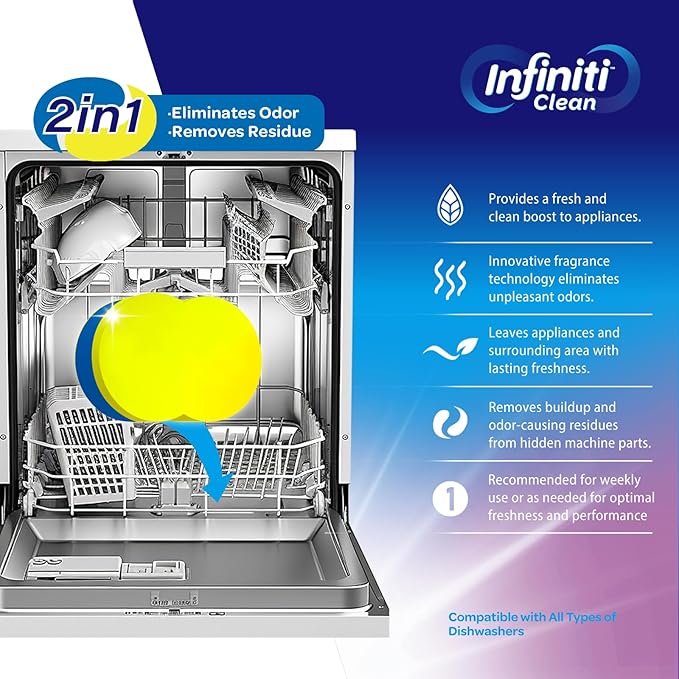 • Odor Elimination & Freshness: Infused with our dishwasher cleaner and deodorizer tablets, your dishwasher will be rid of unpleasant odors and left with a clean, fresh scent after every use