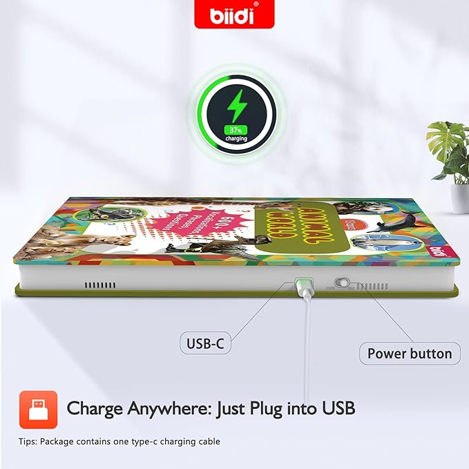 • DURABLE DESIGN AND TYPE C: Carefully bound with tear-proof and waterproof pages, rounded corners are safer for children! The interactive book weighs only 400g and comes with a simple and convenient TYPE-C charging port, making it easy to carry and charge when travelling! Up to 6 hours of continuous use at medium volume!
