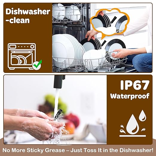 • High-Heat & Waterproof Probes: The stainless steel probes are engineered to withstand extreme temperatures up to 300°C (572°F), ideal for high-heat grilling and smoking. The thermometer for cooking can accurately monitor meat temperatures up to 100°C (212°F), with a precision of +/-1°C. The IP67 waterproof rating means that the probe can be rinsed under running water or cleaned using a dishwasher, ensuring durability and hygiene