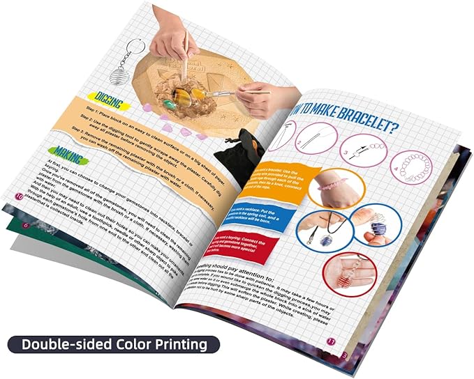 • 🎨 Make DIY Jewelry & Accessories – Includes all supplies to create unique necklaces, bracelets, and keychains with the gems they discover—hands-on science meets creative design.