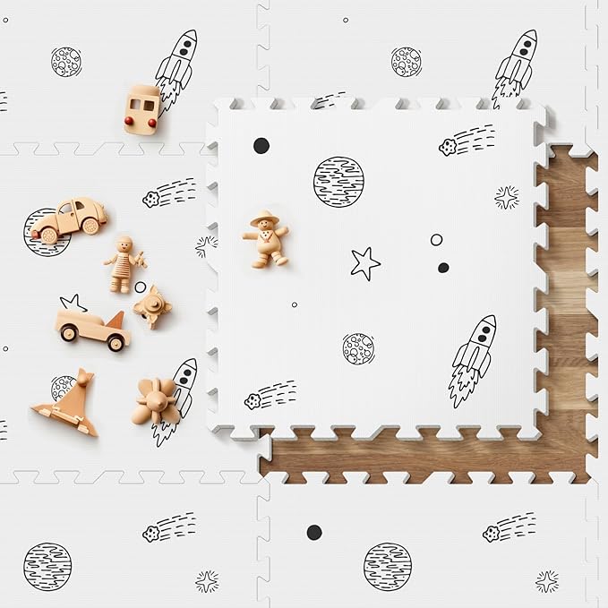 • SPACE PATTERN DESIGN: The space design adds a fun and magical touch to any nursery, making it a perfect spot for your little one to grow and play making it a pleasant place for your little ones to interlock foam floor tiles. Made of soft high-quality materials, the non slip bottom ensures its stable placement, making it provides a safe and calming play area for your baby or toddler.