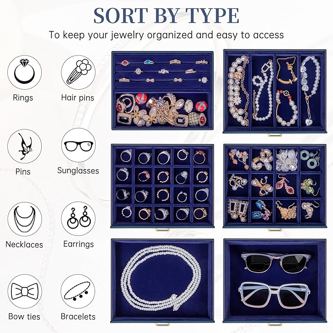 • 【LARGE CAPACITY】With 6 versatile pull out drawers, this huge jewelry box can store a lot of jewelry accessories, such as rings, earrings, necklaces, chains, bracelets, and so on. One deeper drawer is designed for large jewelries