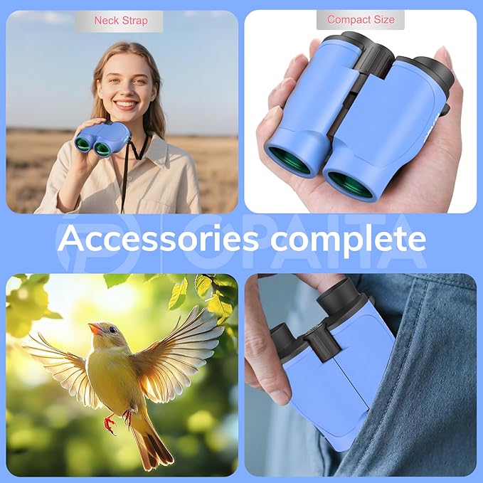 Compact Binoculars for Adults High Powered - OPAITA 20x32 Small Binoculars for Adults Kids with Low Light Vision for Hunting Cruise Ship Travel Concert Hiking Blue