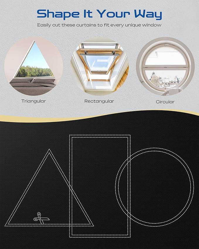 • Multiple Sizes Available - Offering a range of width and height specifications to precisely fit various window types, from small bathroom windows to standard bedroom windows and large living room floor-to-ceiling windows. It is recommended to choose a width 2–5 inches wider than the window and a length with a 1–2 inch drape. Combined with the hook-and-loop tapes to seal the edges, it achieves 100% light-proof shading