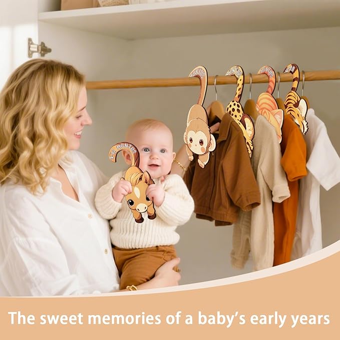 • 【What's Included】 This set of wooden baby closet organizers includes 8 sturdy dividers, each featuring a different cute animal illustration. They cover essential growth stages: newborns, 0-3 months, 3-6 months, 6-9 months, 9-12 months, 12-18 months, 18-24 months, and toddler. As your baby grows, sorting clothes by age makes daily access and care much smoother