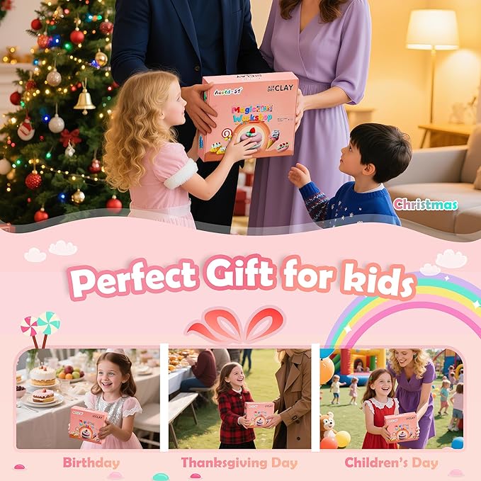 • Creative Fun Gift for Kids:This vibrant beautifully packaged molding clay kit features sweet cake dessert designs, making artistic play extra special.Makes a fun gift for girls, boys and teens.A gift that combines artistic creativity, education, and parent-child interaction—perfect for birthdays, Christmas, parties, or other celebrations!