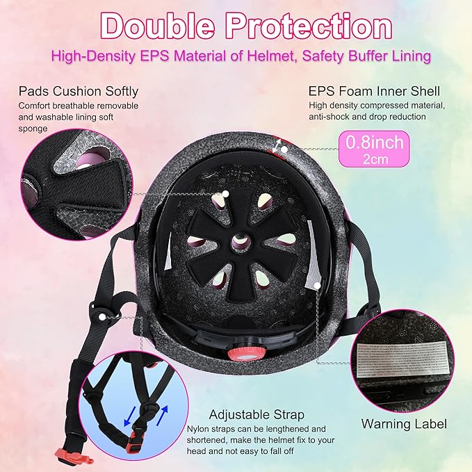 • 【Perfect Gift Choice for Kids】 Our boys girls helmet is lightweight (only 12.3oz), and kids have no burden wearing our bike helmet. The toddler bike helmet provides protection for many outdoor activities, such as bicycling, roller skating, skateboarding, scooter, street dancing, pedaling, etc. It is a good choice as a gift for Children's Day, Christmas, Halloween, Thanksgiving, Birthday and other holidays.