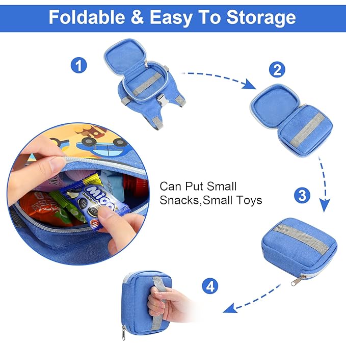 • Foldable & Reflective: There is a small pocket on the back of the harness, you can fold it when you don’t need it, which is very convenient to carry. The wrist link and tether are reflective, making it secure for children to go out at night