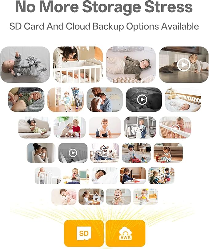 • Support Cloud Storage and SD Card Storage: After starting the service, you can play back videos at any time. The videos can be exported in MP4 format, recording precious moments of baby growth.