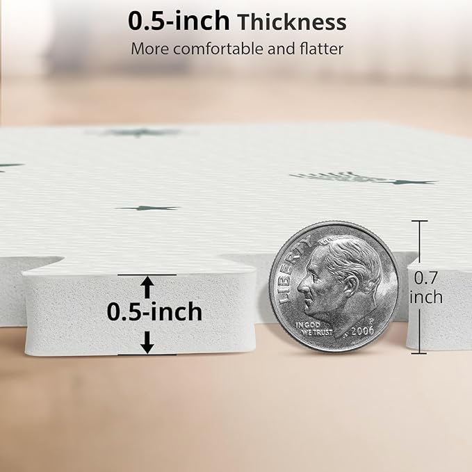 • Safety To The Absolute Max: The 0.5" thick foam flooring tiles create a safe play area for little ones. Made from certified EVA foam through a batch process, The floor pads for babies ensure premium quality and are free from BPA, PVC, and other harmful substances.