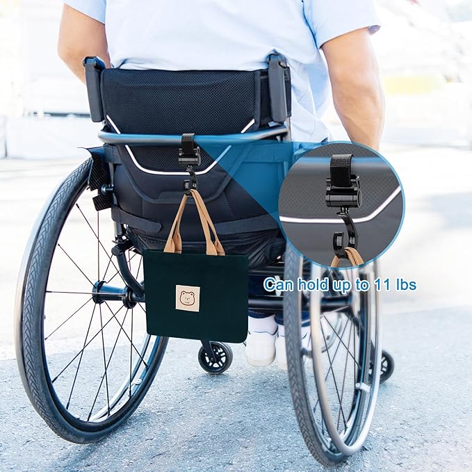 • This cup holder with hook set comes with a universal hook that can be hung on a stroller, wheelchair, bicycle, or other device. The hook has a maximum load capacity of 11 lbs.