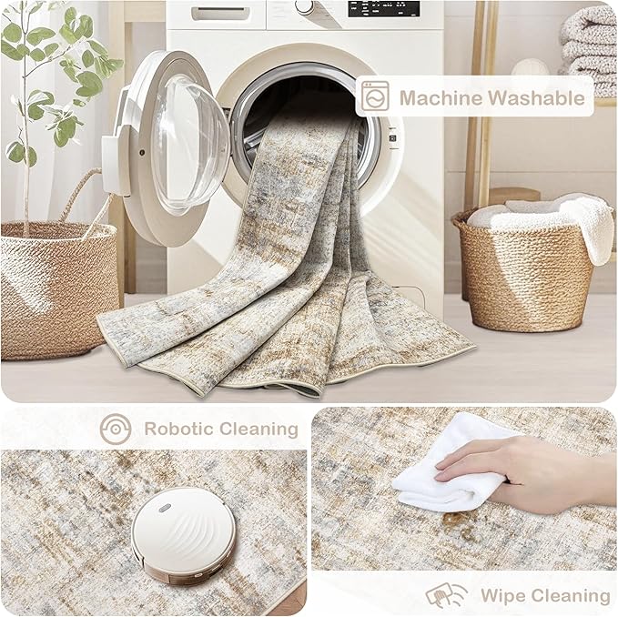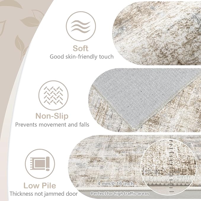 • Anti-Stain Low Pile Rug: Our washable rugs surface pile are short and dense, can block dust and hair embedded, spilled drinks coffee and other liquids will not penetrate into the neutral rug inside; Our 8'x10' large rug is moderately thick and won't snag on doors, which not only keeps indoor rugs clean, but also adds convenience for high traffic areas.