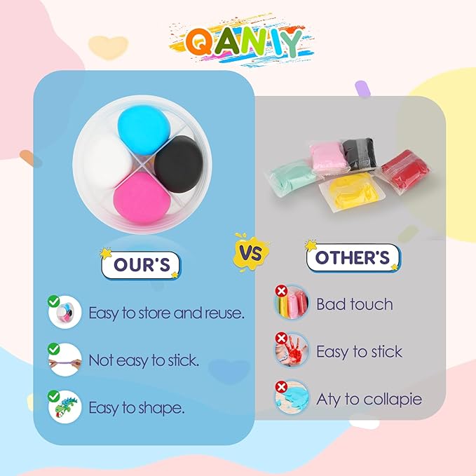 • 【Diy Creative Activities for Kids】: Our modeling clay is soft, easy to use and non-sticky and it won't fade or crack over time. The included instruction manual has simple operation steps, and beginners can easily get started. This arts and crafts toy is great for classroom activities, playdate activities, or solo play. Say goodbye to electronic devices and let your child dive into the world of art and creativity