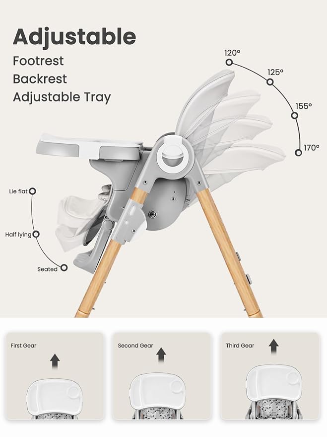 • Fully Adjustable Design: Customize for your baby's comfort with a 3 level footrest, 4 position reclinable backrest, and 3 position adjustable tray. Both the tray and footrest adapt as your child grows.