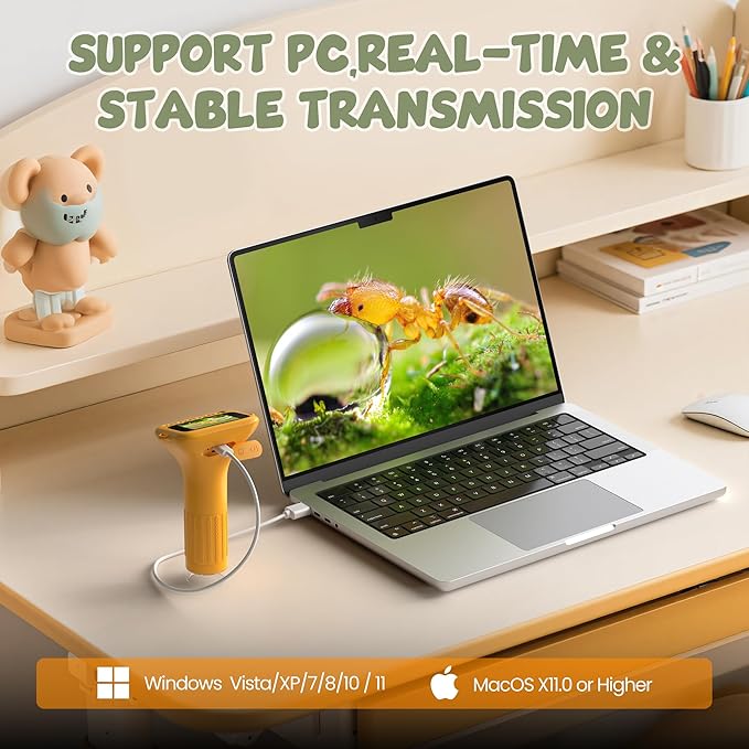 • Encourage Exploration & Reduce Phone Dependence: This digital microscope sparks kids’ curiosity about nature, prompting them to put down phones and head outdoors. They’ll observe leaf cells, insect legs, or soil particles—gaining knowledge while having fun. It fosters healthy habits by turning screen time into hands-on exploration, making this microscope a great way to balance play and learning for kids