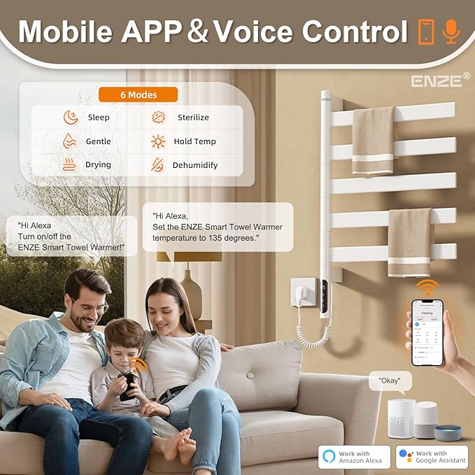 • 【Smart WiFi Towel Warmer with Voice Control】 Control your electric towel warmer anytime via the WiFi towel warmer function through Tuya app, Alexa, or Google Assistant. Experience hands-free convenience with this smart towel warmer designed for modern living.