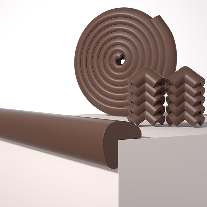 Baby Proof Edge Corner Protector, 16.4FT 0.47''Th L-Shape Furniture Corner & Edge Safety Bumpers with 10 Corners, Pre-Taped, Soft NBR Rubber Foam Desk Edge Cushion Wall Corner Protector (Coffee)