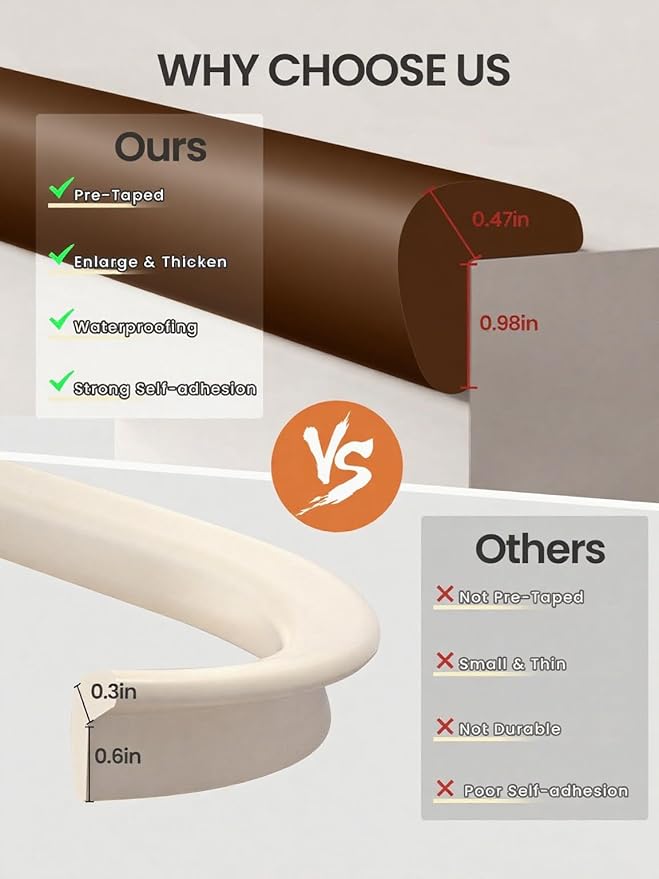 • Covering All Dangerous Corners of the House: Perfectly wrapping the sharp corners of the coffee table, edges of the TV cabinet, stair handrails, window sills and other hidden danger areas, creating a 360 Β° safe crawling space! Creates worry-free exploration zones for fearless little adventurers