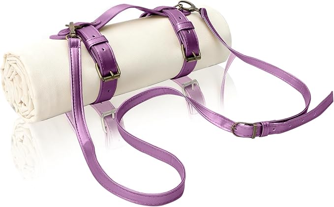• Includes: 1 white canvas mat, faux leather handle/should strap, and webbing strap