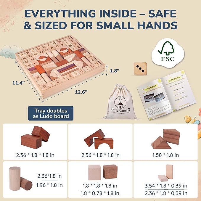 • Premium FSC Beech, Smooth & Durable – Solid wood blocks, hand-sanded edges; FSC-certified and safety-tested for peace of mind.