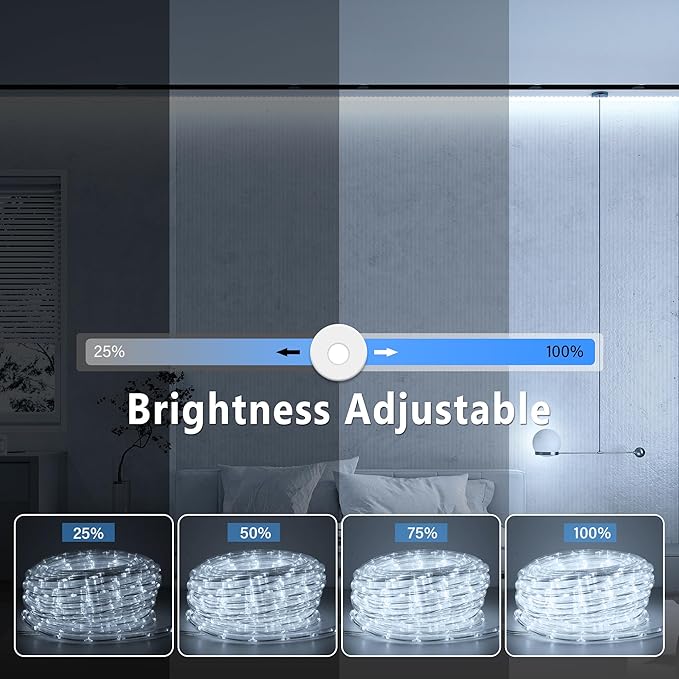 • Brightness Adjustment : The brightness can be adjusted, which can create a pleasant and relaxed atmosphere for your celebratory occasions with these cool white flexible rope lights