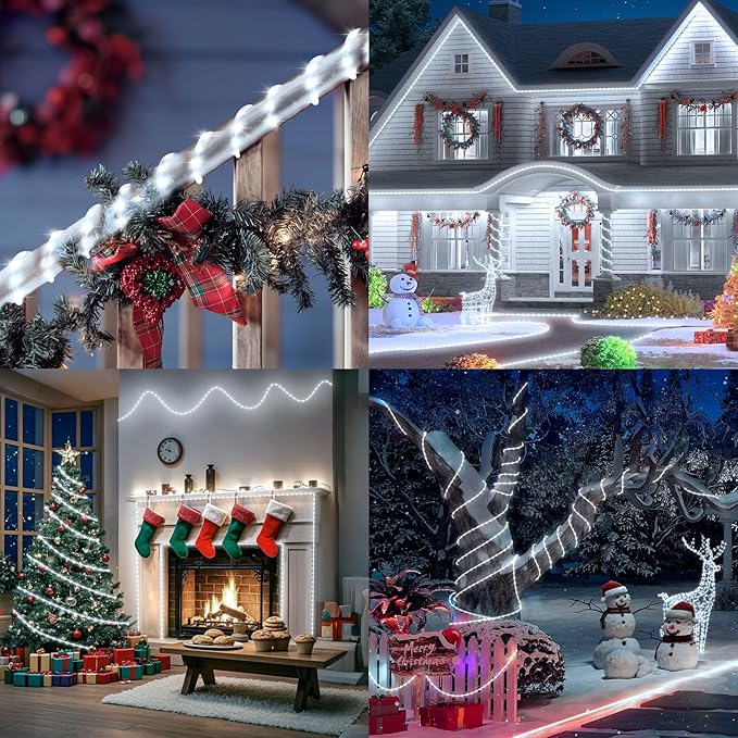 • Rope Lights Waterproof: With IP68 waterproof, perfect for yard, house, deck, patio, garden, pathway, tree, and outdoor. Also suitable for room, indoor, seasonal and Christmas decor, etc (Note: The plug is not waterproof, please keep it away from water)