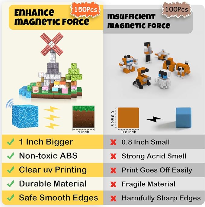 • 🌟𝐄𝐱𝐩𝐥𝐨𝐫𝐞 𝐄𝐧𝐝𝐥𝐞𝐬𝐬 𝐏𝐨𝐬𝐬𝐢𝐛𝐢𝐥𝐢𝐭𝐢𝐞𝐬 𝐰𝐢𝐭𝐡 𝟏𝟓𝟎𝐏𝐂𝐒 𝐌𝐚𝐠𝐧𝐞𝐭𝐢𝐜 𝐁𝐥𝐨𝐜𝐤𝐬 𝐟𝐨𝐫 𝐊𝐢𝐝𝐬 - Unleash your child’s imagination with KIMPOK’s 150PCS magnetic building blocks set. Featuring 1-inch blocks, kids can create stunning landscapes—forests, rivers, houses, mountains, and more! These high-quality magnetic blocks are designed to stimulate creativity and enhance STEM skills, making them perfect for children aged 3-8. A must-have educational toy for curious young minds!