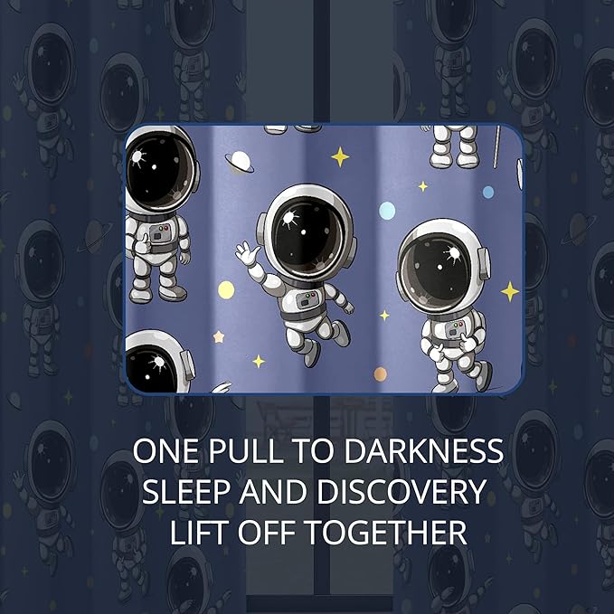 Kids Space Astronaut Blackout Curtains - 100% Blackout, Thermal Insulated, Noise Reducing, Perfect for Kids Room and Nursery, 2 Panels (Spacewalk Buddies, W52×L63)
