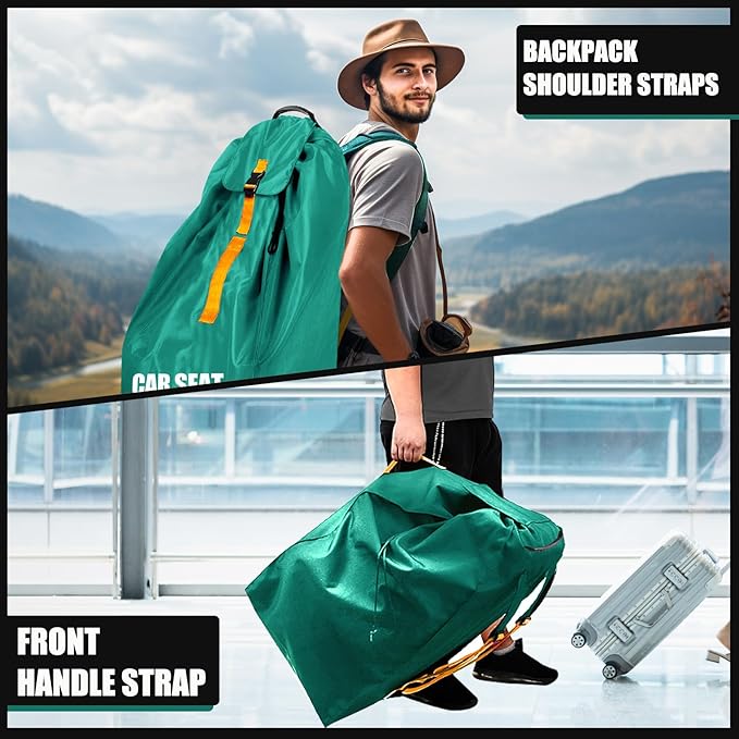 • ❤ EASY TO CARRY: Equipped with adjustable comfortable padded shoulder straps, our travel car seat bag can easily be carried like a large backpack. The car seat travel bag also has handles in front and top if you don’t want to carry it on your shoulder. When not in use, it can be easily folded and kept in the storage pouch, without taking up much space.