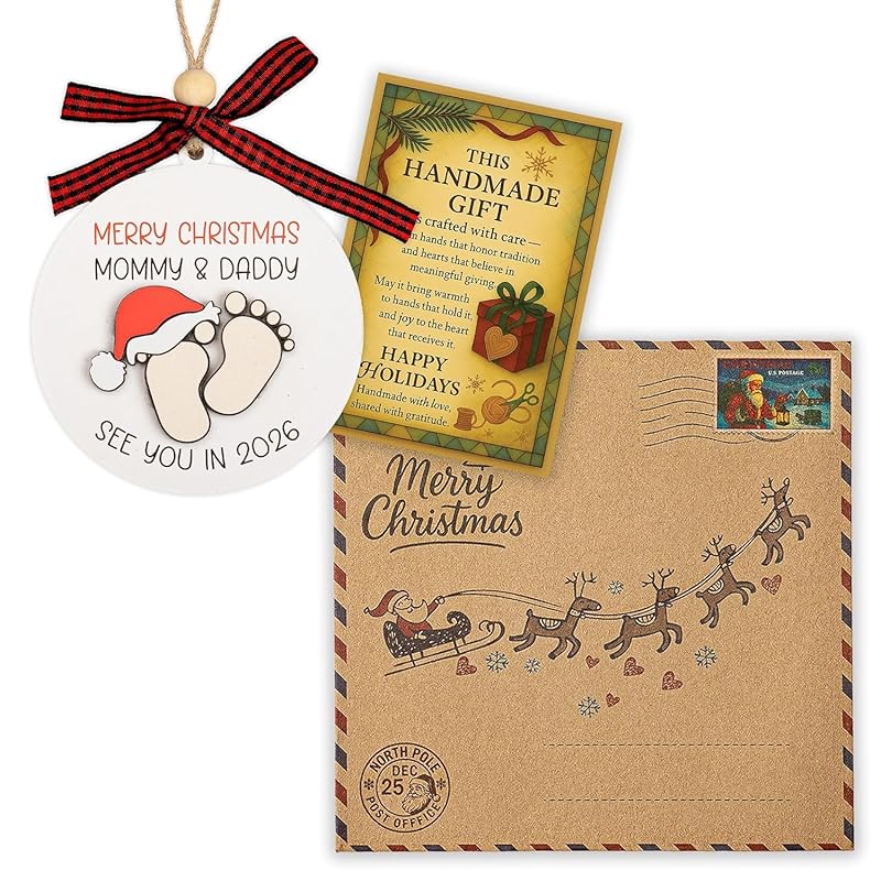 • 🌟 Gift for Expecting Parents This 4-inch wooden ornament is crafted with love and designed to melt hearts. Featuring cute baby footprints and the sweet message 'See You in 2026,' it’s ideal for gifts for a couple at Christmas, especially those who are soon-to-be parents. A sentimental keepsake that will be cherished forever.
