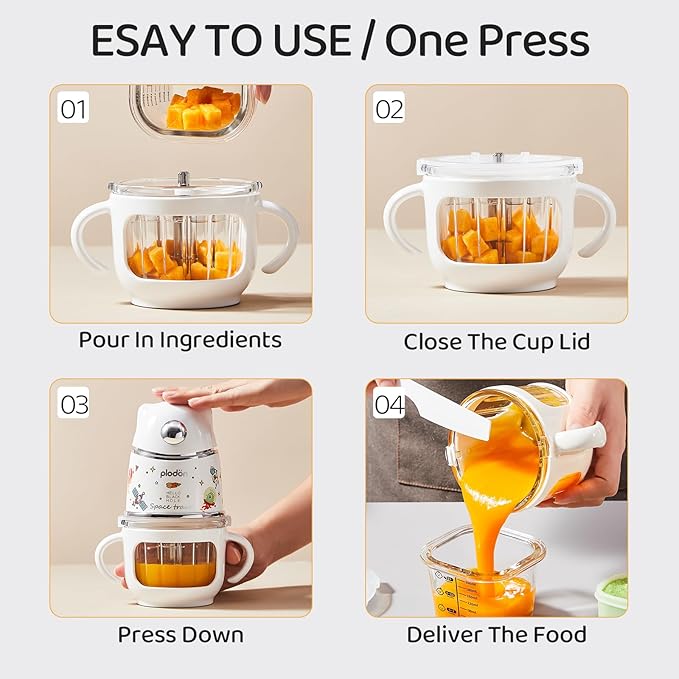 • 【Suitable for various ingredients】This baby food puree maker can mix various fresh fruits, vegetables, breast milk and meats to make food suitable for babies.